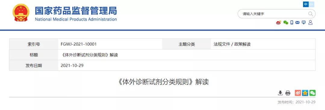第八條 體外診斷試劑分類目錄由國家藥品監(jiān)督管理局制定并發(fā)布。國家藥品監(jiān)督管理局根據(jù)體外診斷試劑生產、經營、使用情況,及時對體外診斷試劑的風險變化進行分析、評價,對體外診斷試劑分類目錄進行調整。