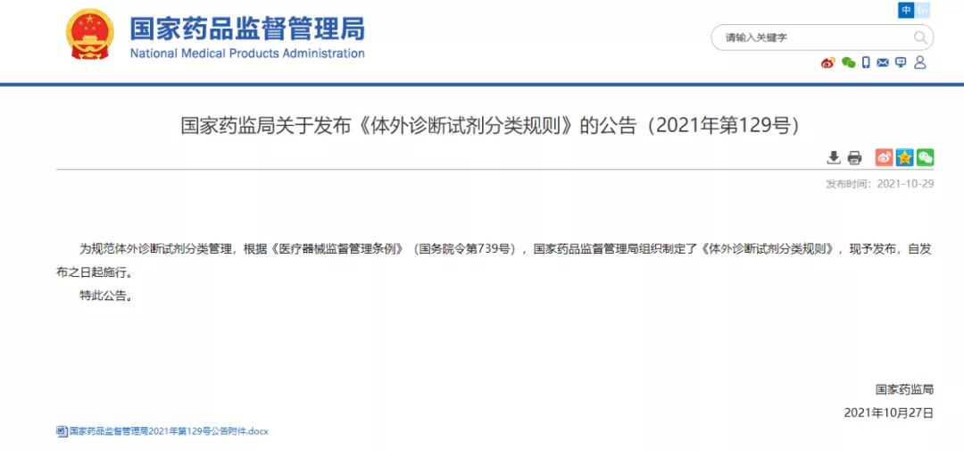 第十條 本規(guī)則自發(fā)布之日起施行。既往發(fā)布的文件中體外診斷試劑分類原則與本規(guī)則不一致的,以本規(guī)則為準。