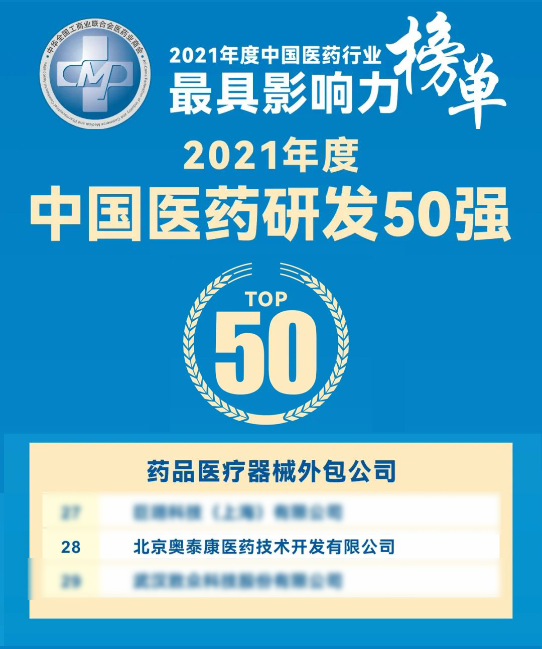 12月8日,全國(guó)工商聯(lián)醫(yī)藥業(yè)商會(huì)發(fā)布2021年度中國(guó)醫(yī)藥行業(yè)最具影響力榜單,經(jīng)過(guò)專家組成員評(píng)選,奧泰康入圍2021年度中國(guó)醫(yī)藥研發(fā)50強(qiáng)榜單。