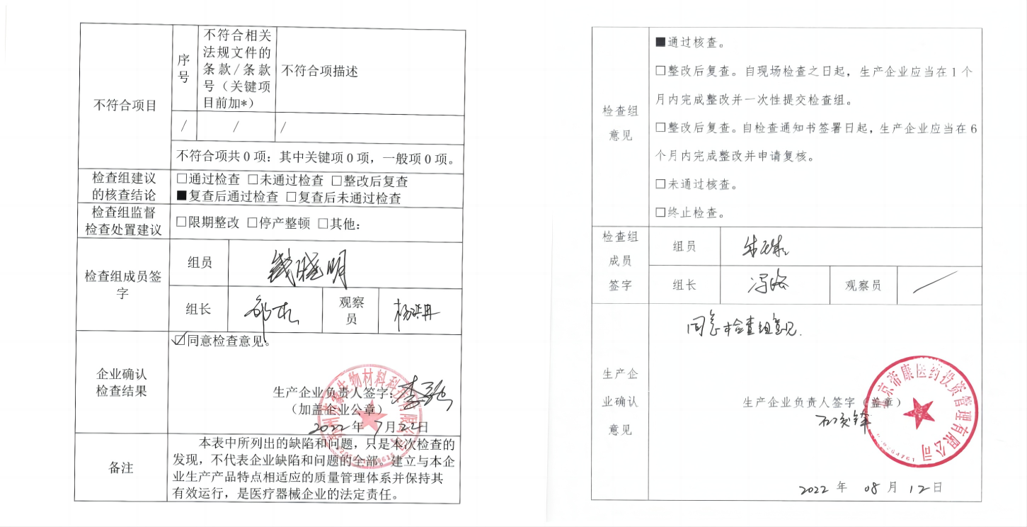 7月底,奧泰康CDMO中心兩款產(chǎn)品通過(guò)北京局組織的質(zhì)量現(xiàn)場(chǎng)體系核查工作(醫(yī)用生物凝膠和絲素蛋白貼敷料),標(biāo)志著CDMO中心已建立健全與所生產(chǎn)醫(yī)療器械相適應(yīng)的質(zhì)量管理體系并保持其有效運(yùn)行,產(chǎn)品獲得生產(chǎn)許可資質(zhì),市場(chǎng)準(zhǔn)入邁入關(guān)鍵性進(jìn)程。