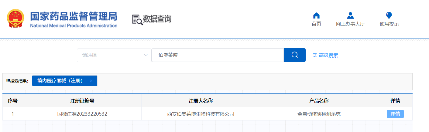 全自動(dòng)核酸檢測(cè)系統(tǒng)獲證——2023年「第10張」三類(lèi)醫(yī)療器械注冊(cè)證???2023年4月24日,經(jīng)國(guó)家藥品監(jiān)督管理局公示,西安佰奧萊博生物科技有限公司的“全自動(dòng)核酸檢測(cè)系統(tǒng)”(國(guó)械注準(zhǔn)20233220532)獲得NMPA批準(zhǔn)上市,系2023年奧泰康助力獲得的第10張三類(lèi)醫(yī)療器械注冊(cè)證。