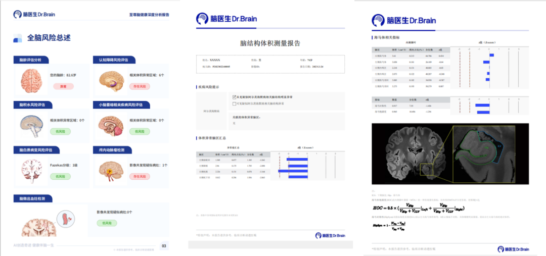 是專注在中樞神經(jīng)系統(tǒng)疾病的人工智能診斷分析平臺,基于醫(yī)未自行搭建的全年齡段中國人群全腦結(jié)構(gòu)影像數(shù)據(jù)庫,結(jié)合前沿的大數(shù)據(jù)分析和人工智能等核心技術(shù),快速、精準評估全腦結(jié)構(gòu)變化、腦白質(zhì)病變、微出血灶及腦血流量等,以量化、直觀的結(jié)果,輔助臨床做出超早期的精準診斷及疾病進展預(yù)測。