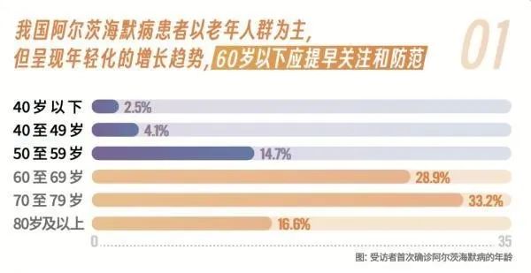 數(shù)據(jù)表明,首次確診阿爾茨海默病的人群中,年齡在60至79歲之間的人群占比最高,為62.1%。但值得注意的是,60歲以下的阿爾茨海默病發(fā)病患者在本次調(diào)查中占到了21.3%,相比國際上報道的早發(fā)型阿爾茨海默病占比5-10%更多,表明阿爾茨海默病在我國發(fā)病越來越年輕化。由于這類罹患人群尚處工作年齡,需要引起全社會的高度重視,強化全人群健康教育,加強疾病預(yù)防、早期篩查和診斷。