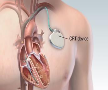 心臟再同步化治療,指雙心室起搏器,是通過雙心室同步起搏的方式,幫助心衰患者實(shí)現(xiàn)正常起搏的裝置。CRT包括一個(gè)口袋大小的脈沖發(fā)生器和三根電極導(dǎo)線,可被植入人體。通過監(jiān)測(cè)心律,在發(fā)現(xiàn)異常后,信號(hào)發(fā)生器發(fā)送電流脈沖,刺激心室重新同步,從而改善癥狀,提高患者的心臟泵血效率。目前有兩種類型的CRT裝置:植入式心臟再同步治療起搏器(CRT-P)和植入式心臟再同步治療除顫器(CRT-D)。主要區(qū)別在于后者除了改善心臟收縮同步性外,還具備除顫功能,能及時(shí)處理危及生命的室性心律失常,避免猝死。