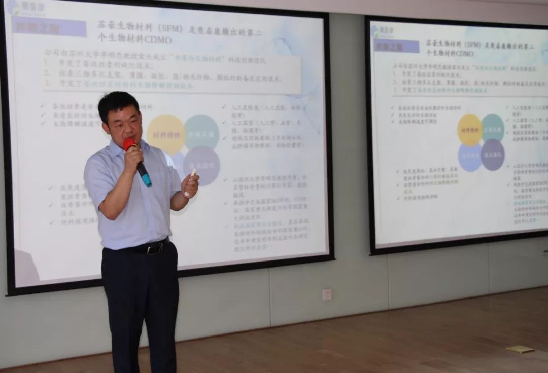 培訓(xùn)會(huì)在下午1:30準(zhǔn)時(shí)開(kāi)始,集團(tuán)CEO饒總對(duì)公司整體發(fā)展做詳細(xì)講解,饒總分別從“企業(yè)發(fā)展歷程”、“管理團(tuán)隊(duì)介紹”、“我們的未來(lái)發(fā)展”三大方面進(jìn)行介紹,培訓(xùn)中,饒總憶苦思甜,深情講述奧泰康發(fā)展初期的鳳凰涅槃,在場(chǎng)員工無(wú)一不為之動(dòng)容,為公司初期艱苦奮斗,堅(jiān)守信念的精神所感動(dòng);之后奧泰康進(jìn)入快速發(fā)展階段,先后獲得多項(xiàng)創(chuàng)新醫(yī)療器械批件,并參與多項(xiàng)國(guó)家重點(diǎn)研究項(xiàng)目,并與多家國(guó)內(nèi)外知名企業(yè)合作,擁有醫(yī)療器械CDMO行業(yè)唯一的已投產(chǎn)GMP車間等等,從最初單項(xiàng)的CRO項(xiàng)目服務(wù)延伸到CRO/CDMO一體化服務(wù),致力于成為醫(yī)藥行業(yè)MA解決方案的領(lǐng)導(dǎo)者;