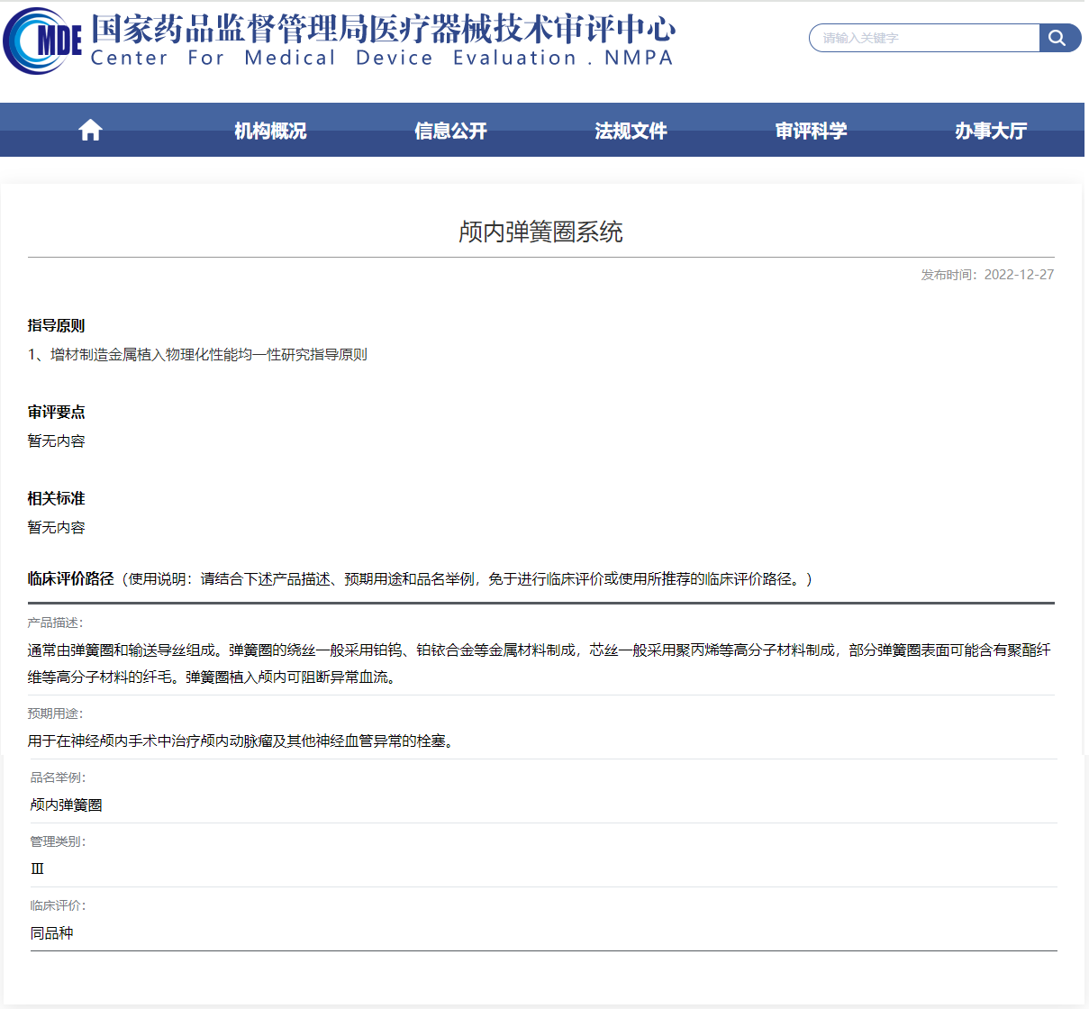 MA市場準(zhǔn)入·解決方案系列 「神經(jīng)介入」②顱內(nèi)彈簧圈產(chǎn)品 ——臨床評價(jià)路徑、技術(shù)審評關(guān)注點(diǎn)、已獲批產(chǎn)品等??根據(jù)《醫(yī)療器械臨床評價(jià)技術(shù)指導(dǎo)原則》可知,臨床評價(jià)的路徑主要包括:免臨床評價(jià)(豁免臨床)、臨床試驗(yàn)、同品種等同性論證(簡稱同品種)三種路徑?!?strong>MA市場準(zhǔn)入系列】根據(jù)不同臨床領(lǐng)域的醫(yī)療器械劃分,對其臨床評價(jià)路徑及相關(guān)政策等進(jìn)行梳理,包括神經(jīng)介入、心腦血管、人工智能、醫(yī)美、腫瘤、骨科、眼科等,旨在幫助大家更好的了解產(chǎn)品上市流程。