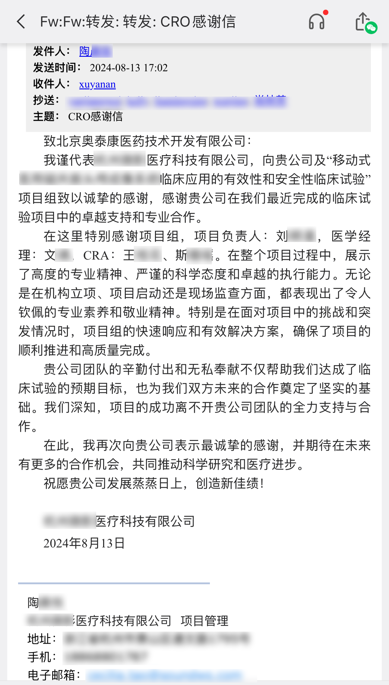 感恩有你,未來可期。在感恩節(jié)來臨之際,我們對合作伙伴的理解和支持表示感激,也對臨床項目組成員表示感恩,是大家每個人的共同努力使得項目得以順利開展,愿我們的合作之旅,如同星辰大海,浩瀚無垠,充滿無限可能與希望。讓我們帶著這份感恩的心,繼續(xù)前行,共創(chuàng)更加輝煌的明天!