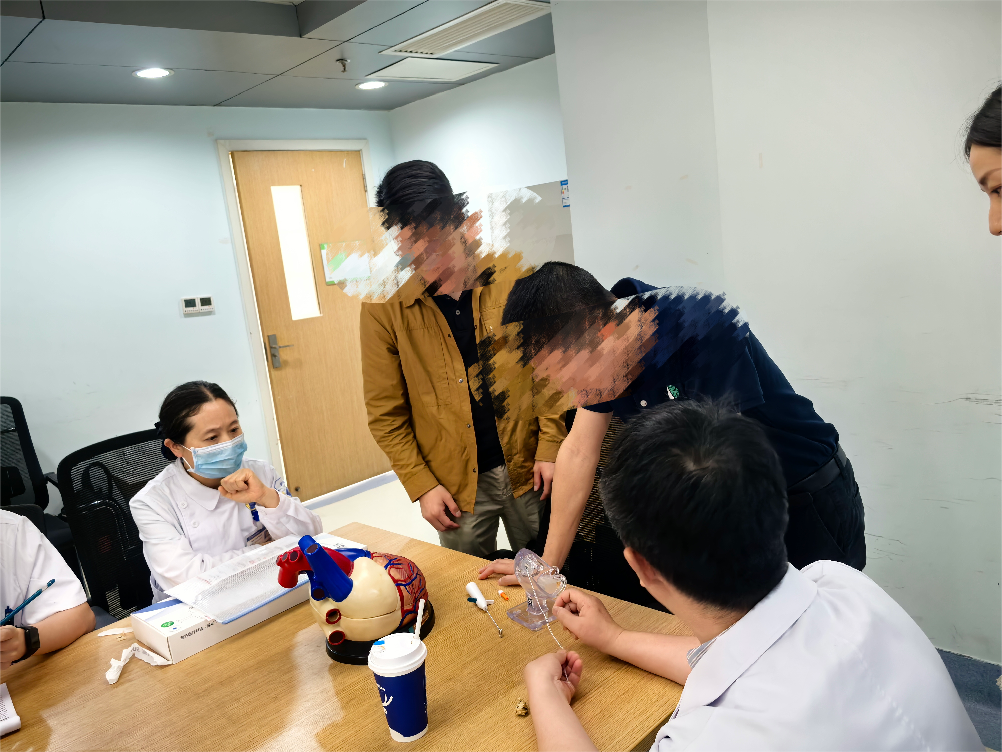 四川臨床試驗(yàn)研究基地,介入二尖瓣腱索修復(fù)系統(tǒng)臨床項(xiàng)目,研發(fā)廠家、研究者及CRO團(tuán)隊(duì)人員,在一同進(jìn)行試驗(yàn)器械的學(xué)習(xí)探討,對(duì)于產(chǎn)品的熟悉程度決定了臨床醫(yī)生能否更好的將器械應(yīng)用于臨床手術(shù),為后期器械的優(yōu)化升級(jí)奠定了堅(jiān)實(shí)的基礎(chǔ)。每一次器械的精準(zhǔn)植入,背后是無數(shù)次的模擬演練與跨團(tuán)隊(duì)協(xié)作。