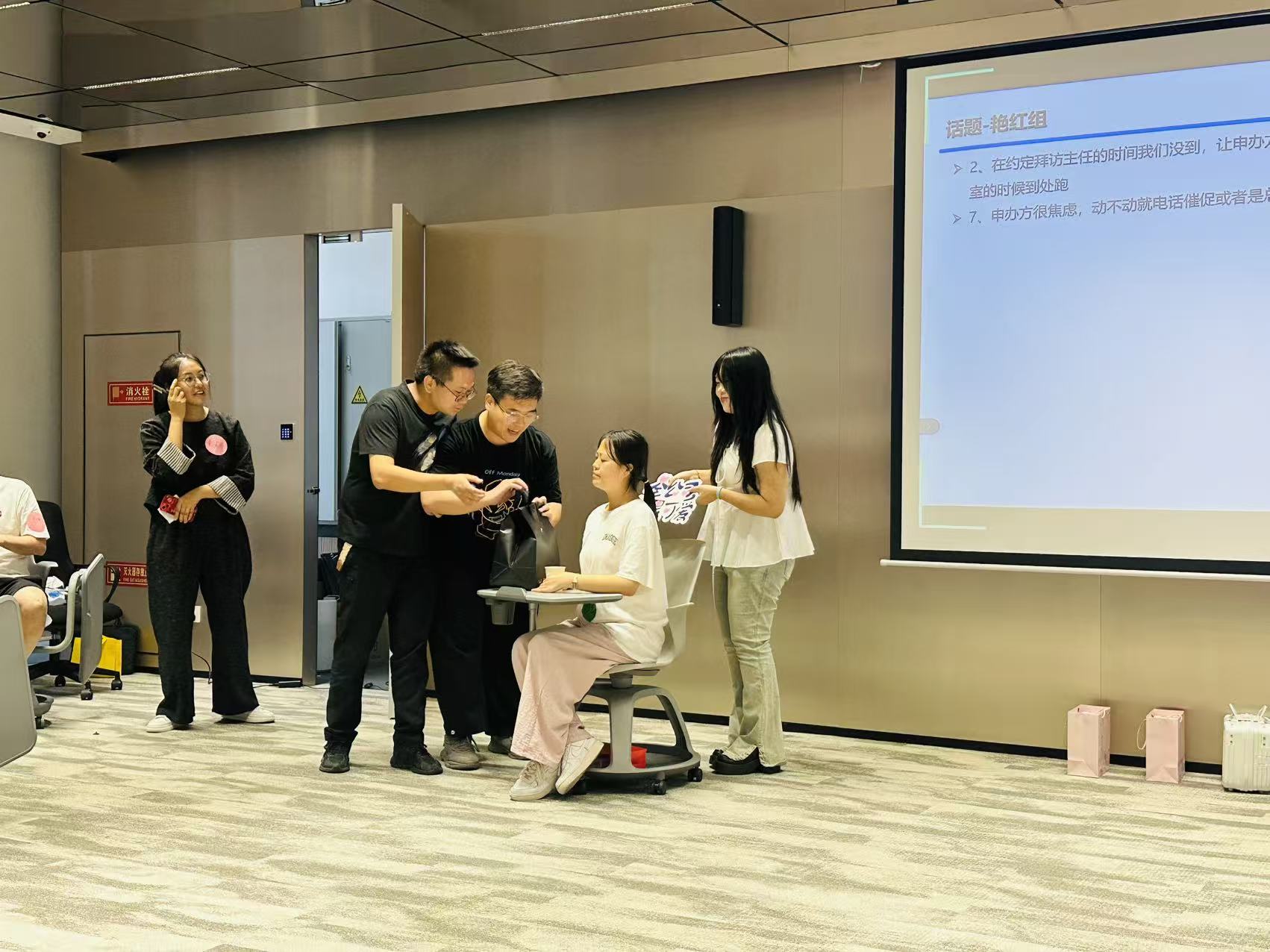 有效的溝通是團隊協作的基石。本次培訓引入了“非暴力溝通”理念,通過情景模擬與案例分析,幫助學員掌握傾聽、表達與反饋的技巧,減少人際沖突,提升團隊凝聚力。通過不同情節的生動演繹,團隊成員詮釋出日常工作中的各種棘手問矛盾,許多學員表示,這一環節讓他們重新審視了溝通方式,學會了如何以更平和、高效的方式解決工作中的矛盾。這不僅是一種技巧,更是一種修行,它能幫助我們化解與研究者、受試者或團隊成員間的潛在沖突,營造和諧、高效的工作氛圍。
